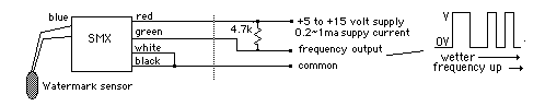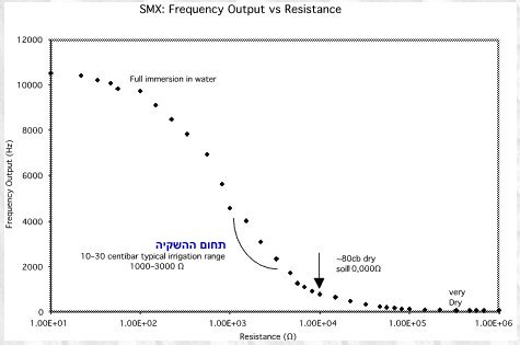 חיישן רטיבות קרקע WaterMark משנה את התנגדותו עם שינוי תחולת הרטיבות בתוכו.