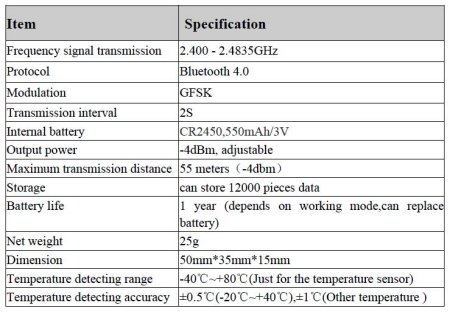 אוגר טמפרטורה עם כבל - בלוטוס