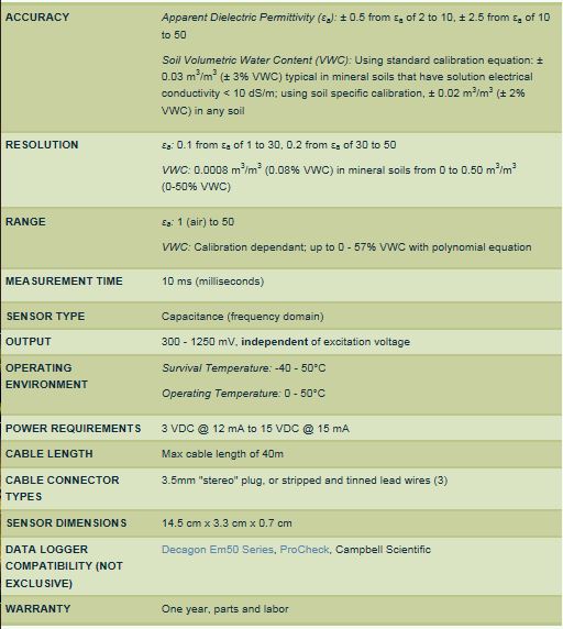 חיישן 10HS רטיבות נפחית אורך: 10 ס"מ מדידה 3-5 ס"מ נפח מדידה : כ 1 ליטר