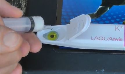סחיטת הזיעה מהמדבקה באמצעות מזרק לתוך מכשיר הבדיקה