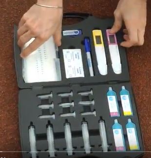 מכשיר לבדיקת אשלגן (כולל תמיסות כיול) מכשיר לבדיקת נתרן (כולל תמיסות כיול) 50 מדבקות לאיסוף זיעה מזרקים, בקבוקוני איסוף